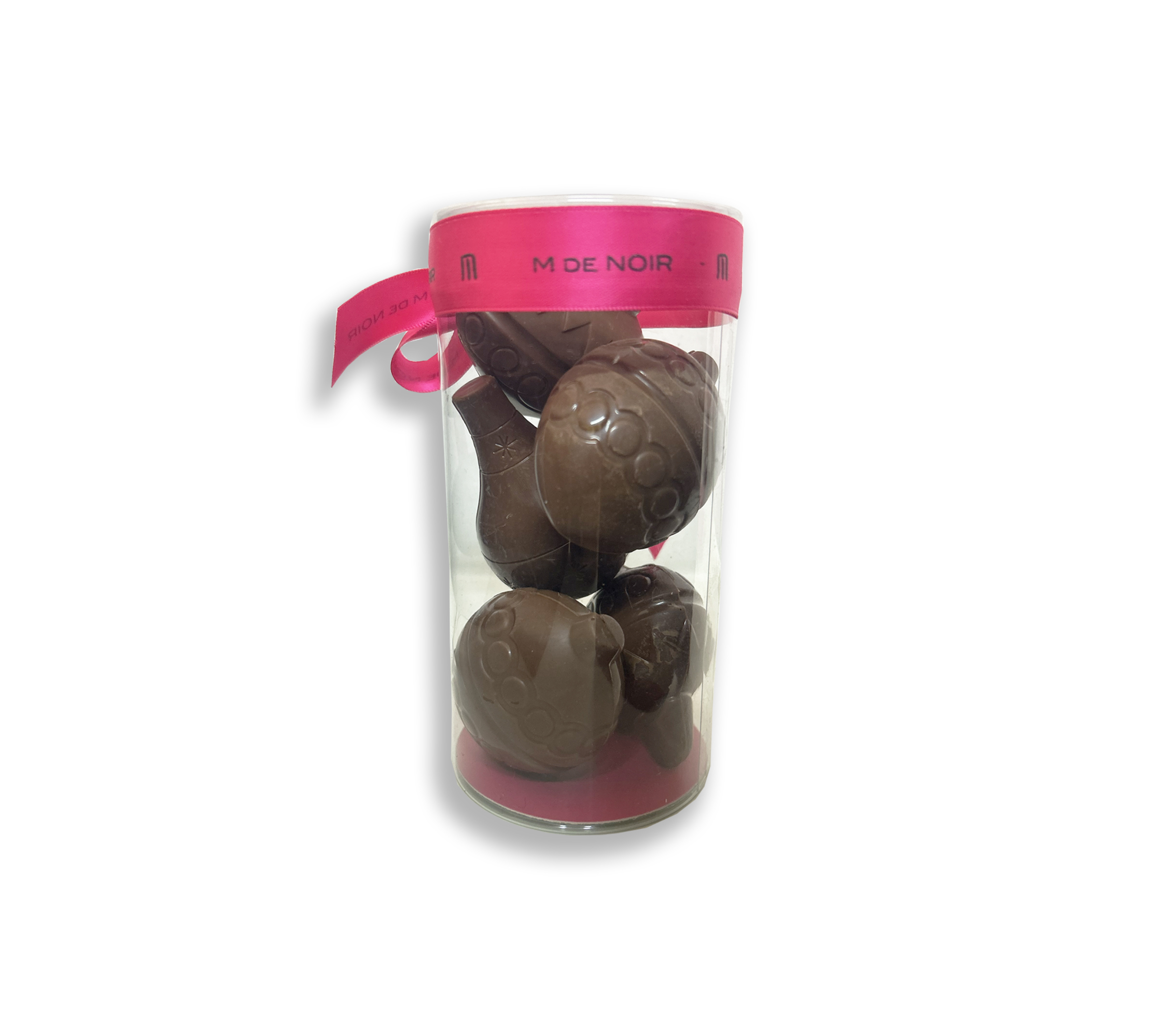 Maya Kanaan In Christmas DÉCOS DE NOËL Boîte de 5 décorations de Noël en chocolat au lait. Disponible en chocolat noir.