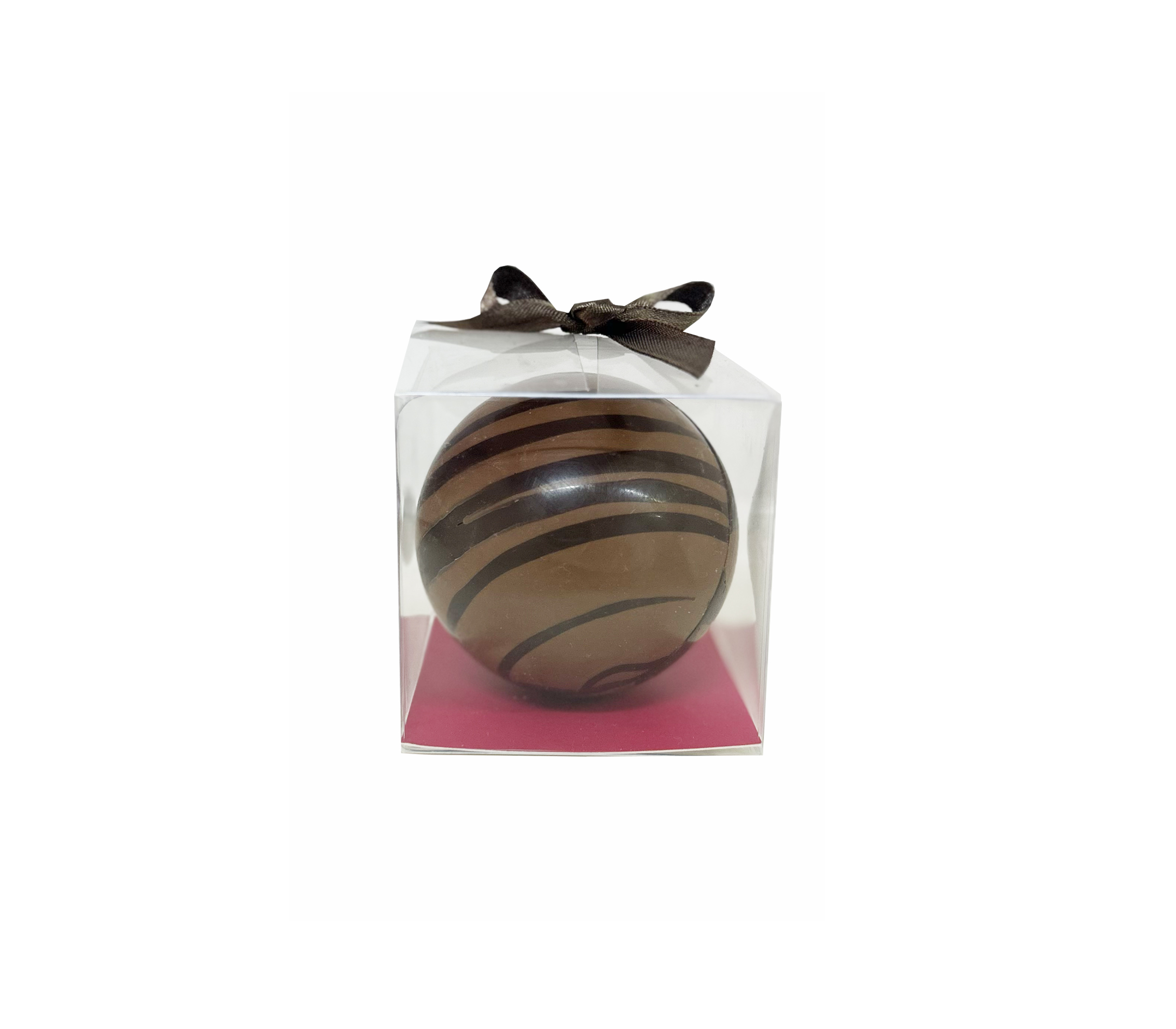 Maya Kanaan In Christmas BOULE SURPRISE Une boule de Noël en chocolat au lait, renfermant de délicieuses petites surprises chocolatées.