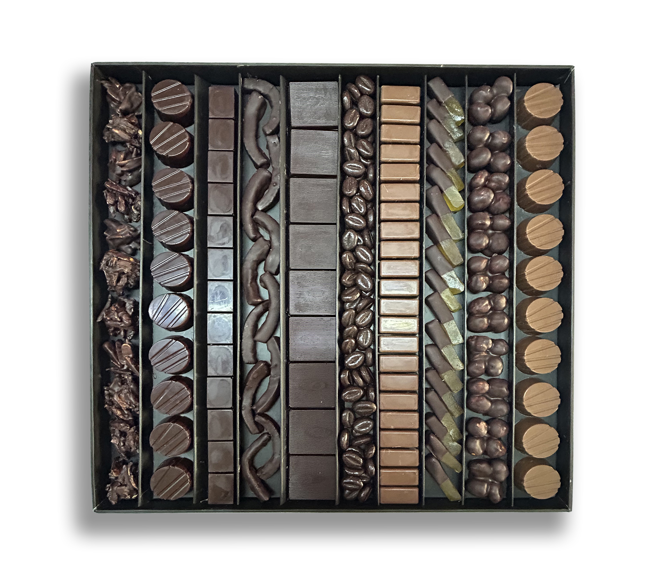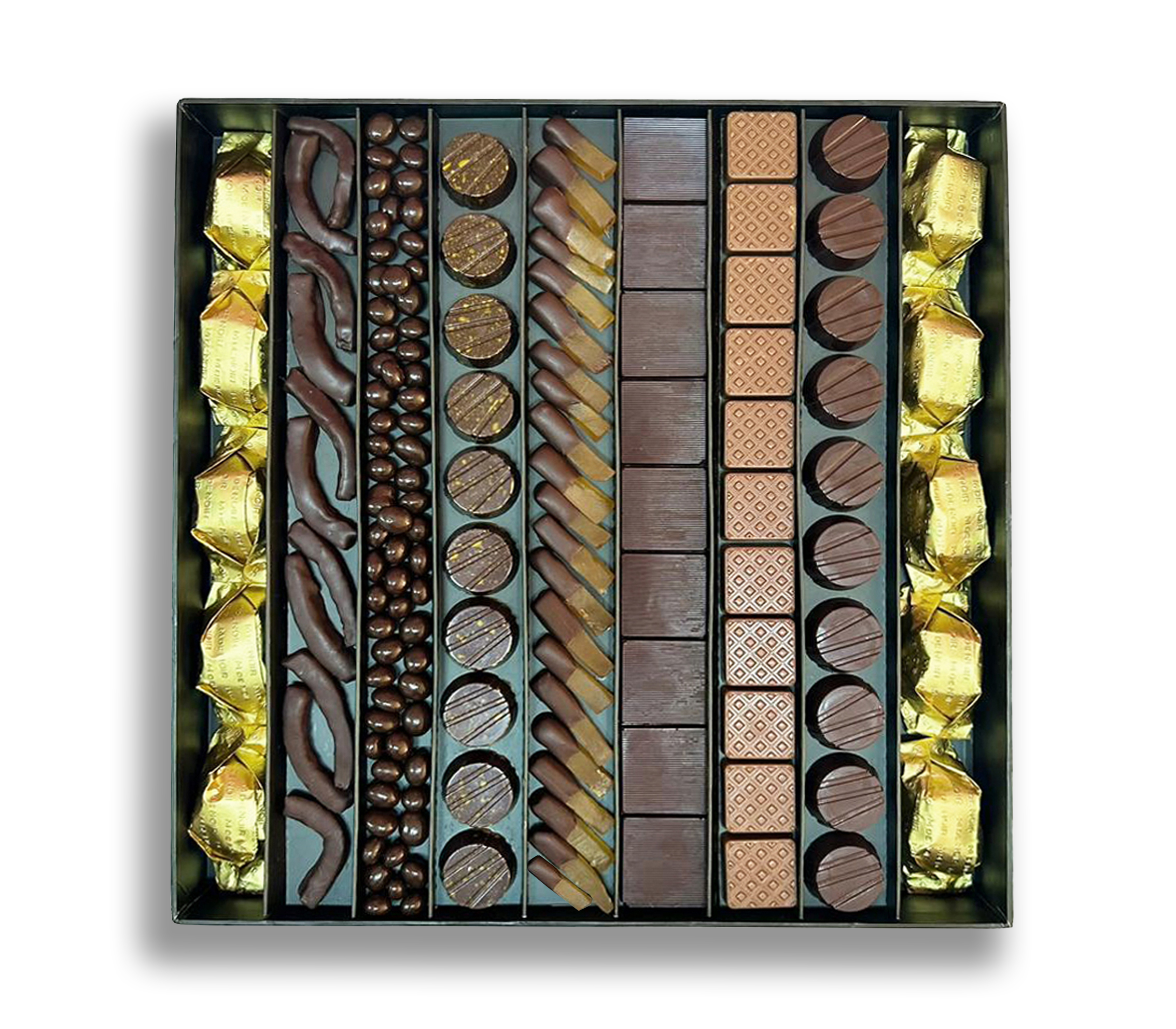 Maya Kanaan In Christmas BOÎTE MIXTE Boîte mixte mariant nos plus bons chocolats à ganache et nos chocolats vegan. 1000 gr