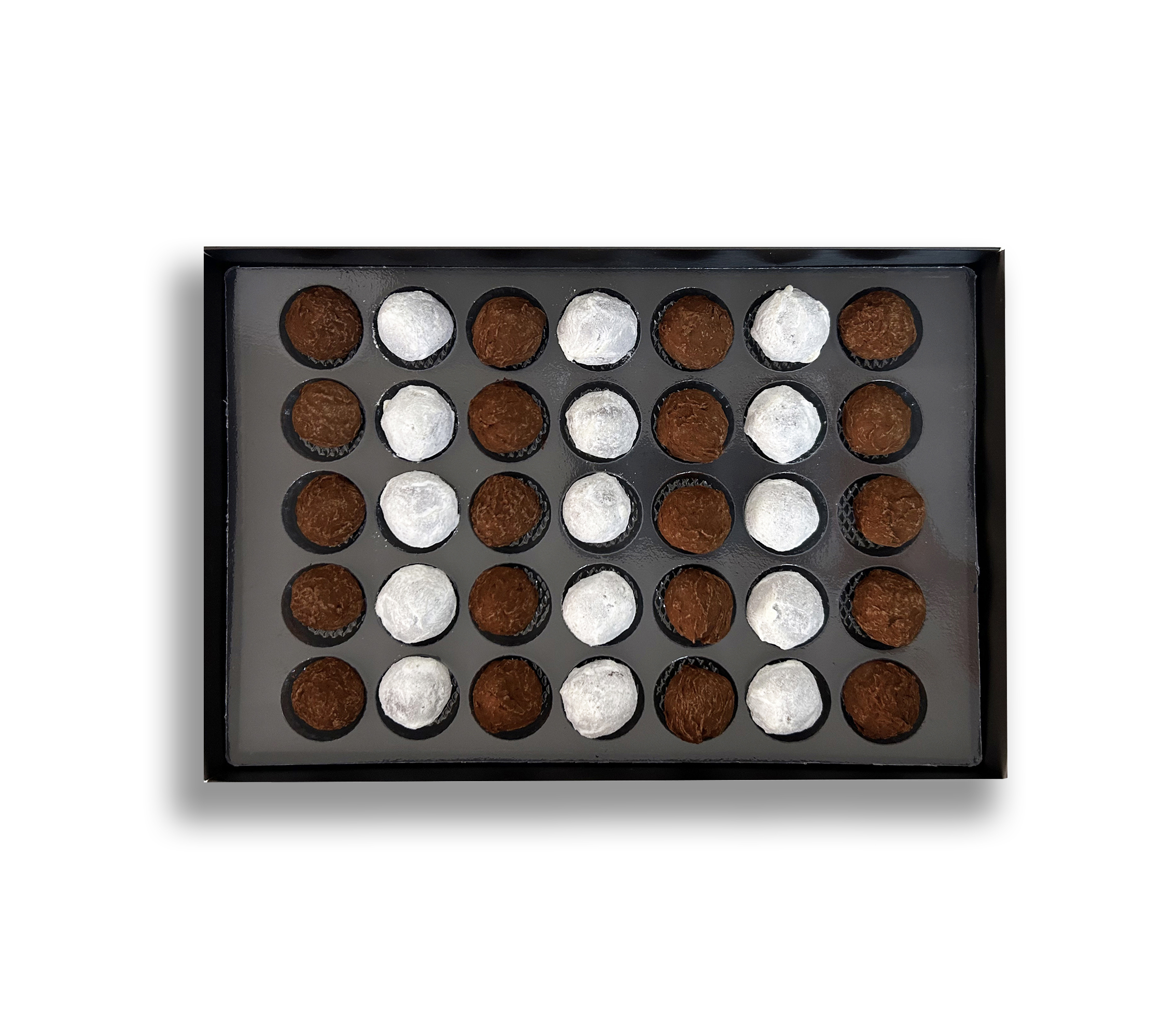 Maya Kanaan In Christmas TRUFFES VARIÉES Boîte de 35 truffes nature, Rhum et Whisky. Sélection au choix est disponible.